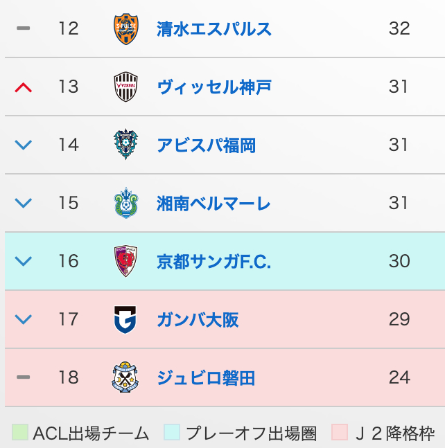 このあと磐田、川崎には負け確定なので