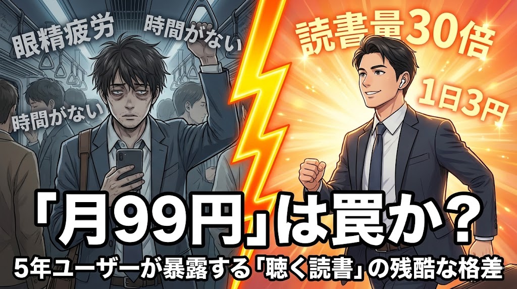 【1/29終了】Audible「3ヶ月月額99円」は罠か?5年で9万円払った私が「登録しないと損害」と断言する経済的理由と、解約忘れを100%防ぐ防衛策【デメリット完全検証】