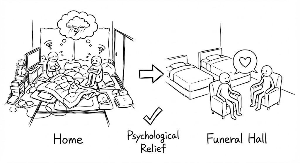 【日記48日目】葬儀場は「宿泊あり」が正解。親戚宅に泊まるストレスを消し、静かな別れを作るためのライフハック