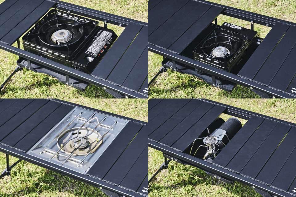 スノーピークの1ユニットサイズでアイアングリルテーブルにはめてもOK。
