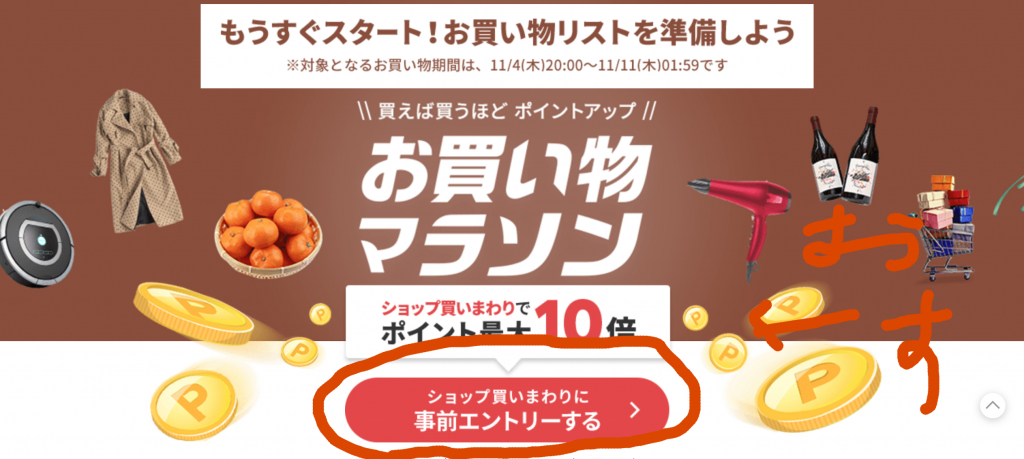 お買い物マラソンでポイント還元を受けるためにはエントリーが必要です。