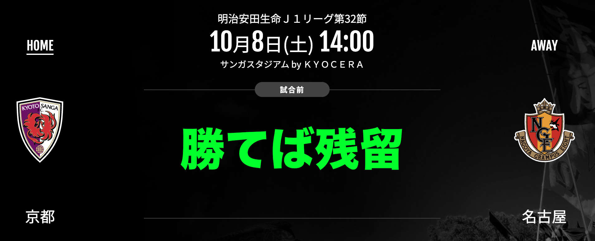 とはいえ名古屋の方が京都より順位は上。強敵であることは間違いない