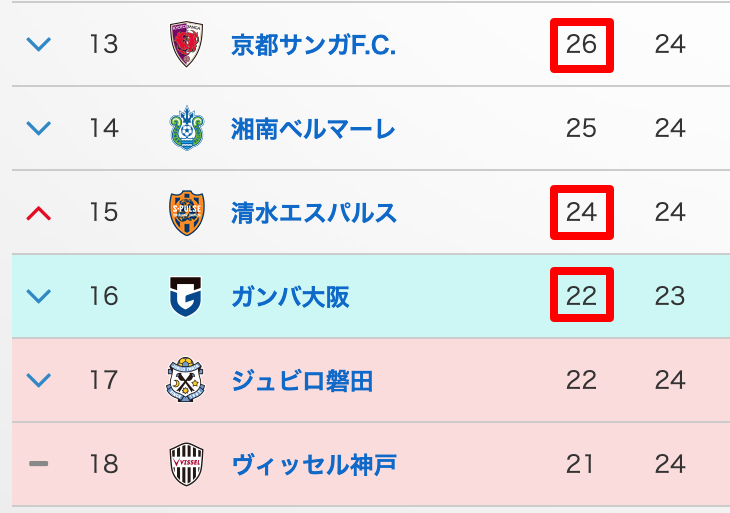 清水が勝てば京都は14位です。
