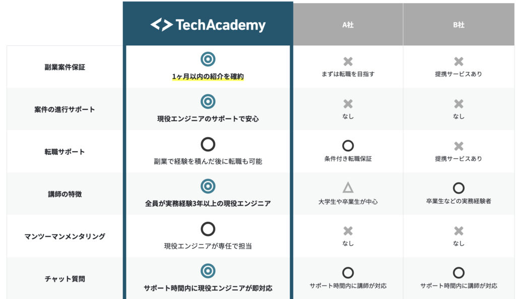 まず、テックアカデミーと比較するオンラインスクールとして代表的なものに、
