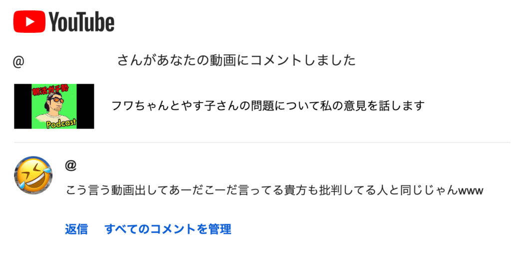 案の定、このコメントをしてきた人のYouTubeアカウントを見てみましたが、